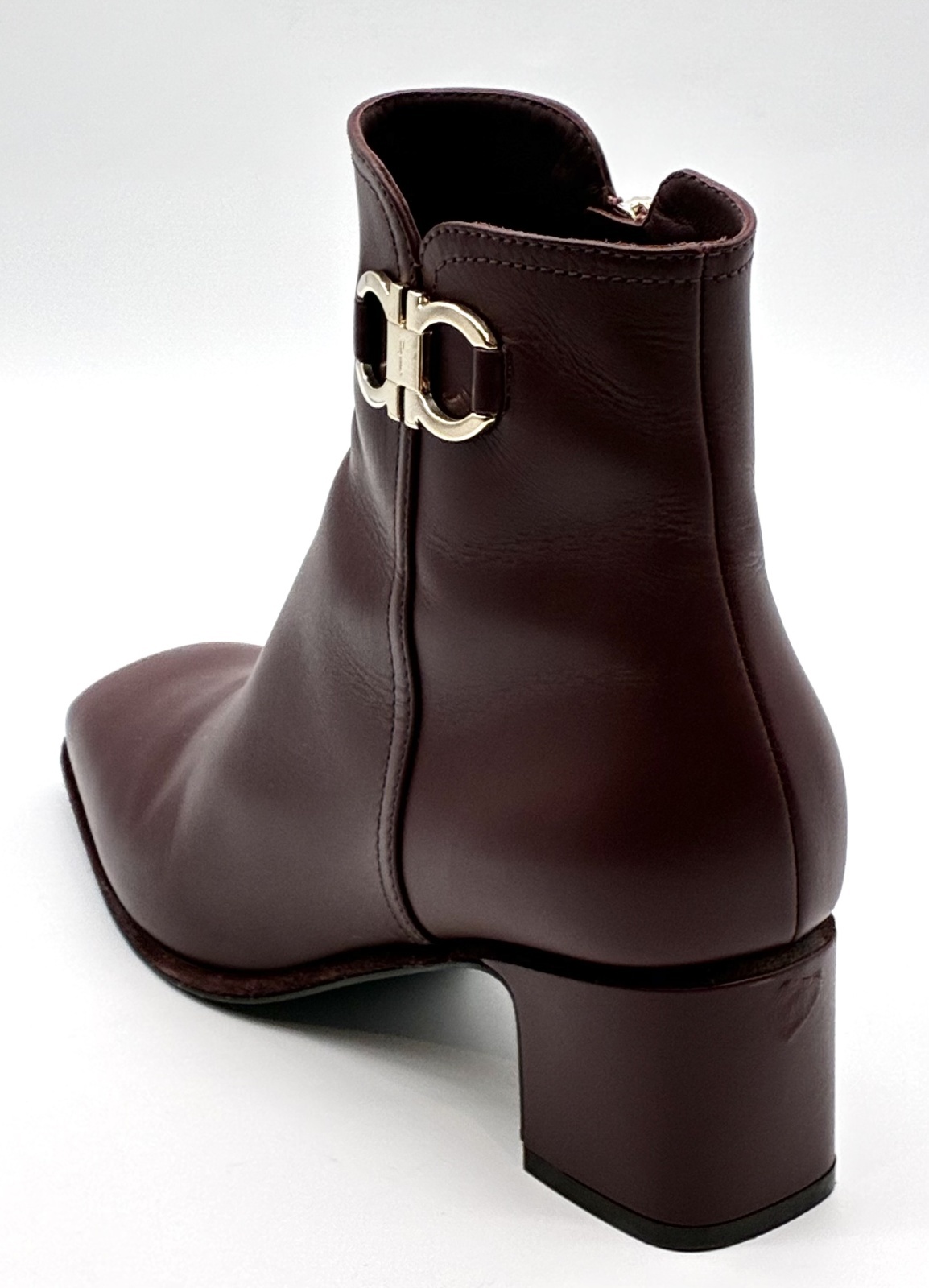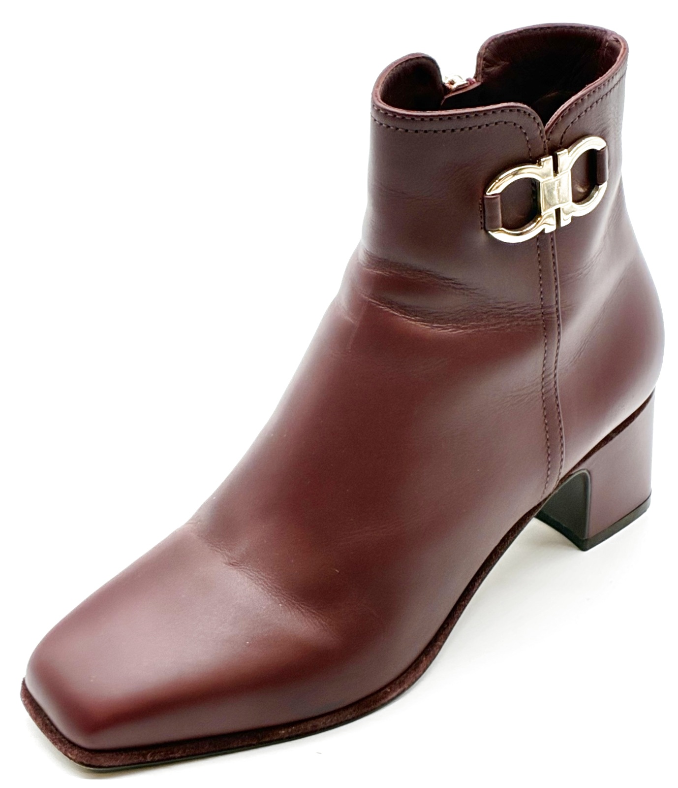 OLD FERRAGAMO(オールドフェラガモ)ボルドーレザーガンチーニ金具付きショートブーツ 7 1/2