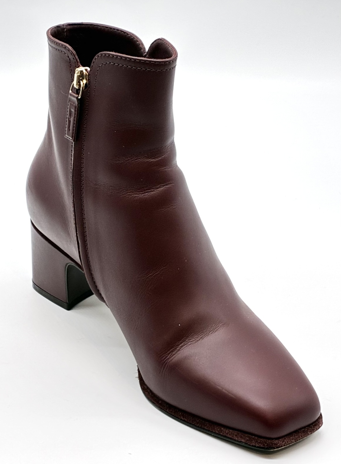 ボルドーレザーガンチーニ金具付きショートブーツ